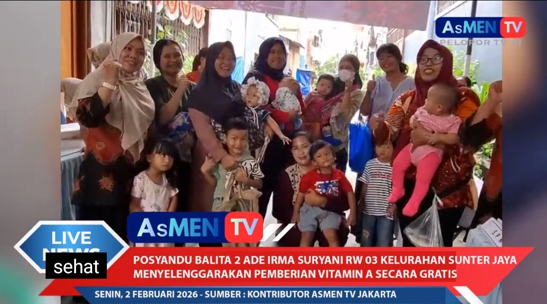 Asmen.id, Jakarta —- Posyandu Balita 2 AD Irma Suryani RW 03, Kelurahan Sunter Jaya, Jakarta Utara, menggelar kegiatan pemberian tablet vitamin A secara gratis bagi balita, pada Februari ini. Kegiatan tersebut merupakan bagian dari program rutin pelayanan kesehatan anak yang dilaksanakan dua kali dalam setahun.