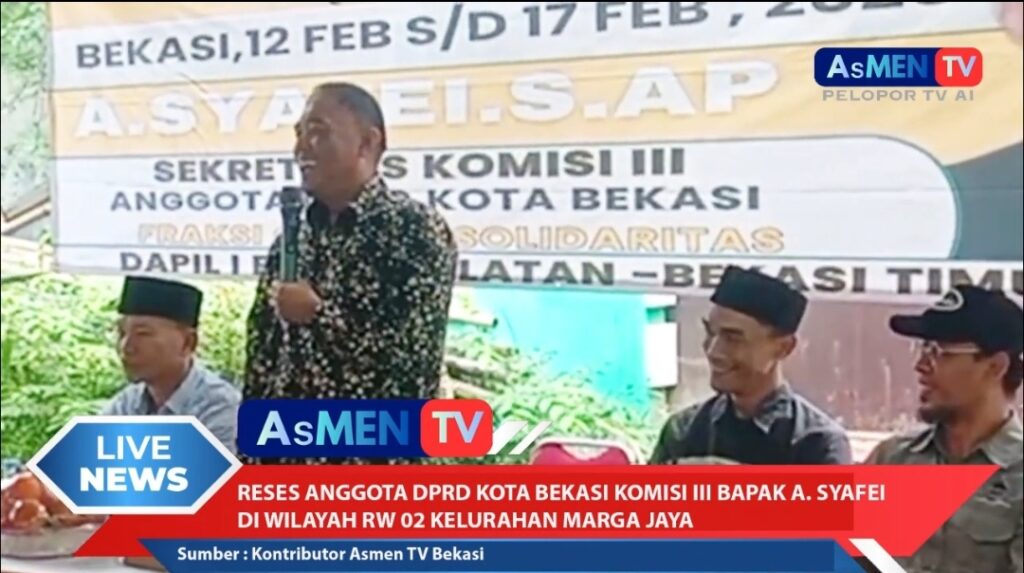 Asmen.id, Bekasi —– Kegiatan reses I anggota A. Syafei, Sekretaris Komisi III dari Fraksi Golkar Solidaritas Daerah Pemilihan I, digelar di wilayah RW 02 Kelurahan Margajaya, Sabtu, 14 Februari 2026. Agenda ini menjadi ruang serap aspirasi warga secara langsung terkait kebutuhan pembangunan lingkungan dan pelayanan publik.