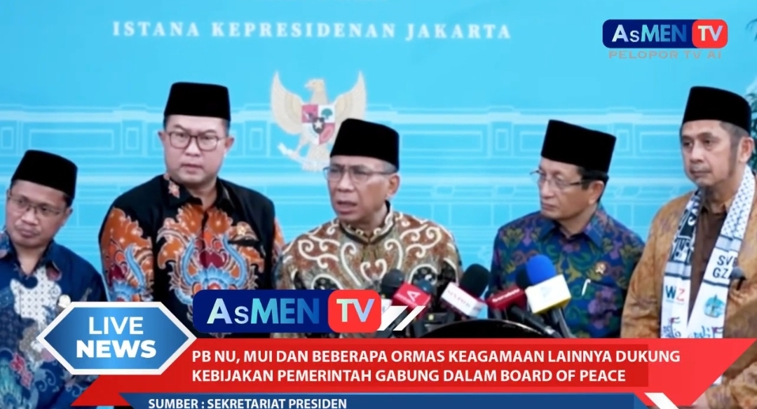 Asmen.id, Jakarta —– Ketua Pengurus Besar Nahdlatul Ulama (PBNU), Ketua Majelis Ulama Indonesia (MUI), serta sejumlah tokoh keagamaan menyatakan dukungan terhadap kebijakan Presiden Prabowo Subianto terkait bergabungnya Indonesia dalam Board of Peace (BOP). Dukungan tersebut disampaikan dalam pertemuan di Istana Negara, Jakarta, Selasa, 3 Februari 2026.